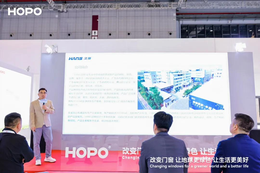 汉狮光动科技总经理苏志扬带来了智能门窗百叶的创新解决方案,以极具前瞻性的理念展示了如何结合科技和可持续发展提升智能门窗的功能性与美观度,引发了现场的热烈讨论。