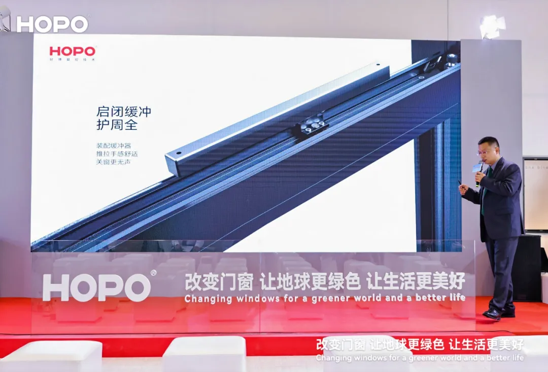 HOPO多款新品重磅亮相。其中G46轻型内倒平移炫开窗五金控制系统尤为引人注目。据星空电竞窗控产品研发中心总经理龙海介绍,轻型版本在保持原有功能性的基础上,进一步优化了产品性能,能够满足更广泛的市场需求;微调防撬内开内倒五金控制系统凭借其卓越的安全性能和安装优势,赢得了现场观众的一致好评。