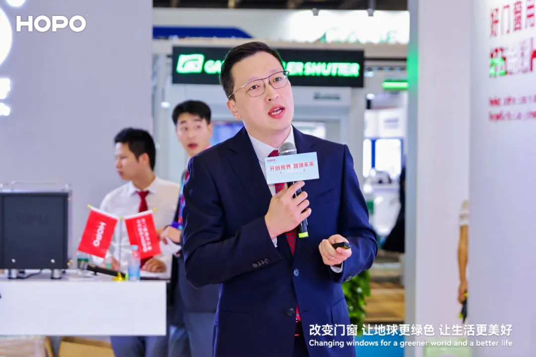 如果说新品发布是HOPO对技术创新的直接展现,那么行业趋势交流则是其对门窗领域未来深刻洞察的体现。此次HOPO特于2024 FBC展会首日以“开创视界·智领未来”为主题,举办行业趋势交流专场活动,有幸邀请到了多位行业领袖与专家,共同探讨门窗幕墙行业的未来趋势与挑战。