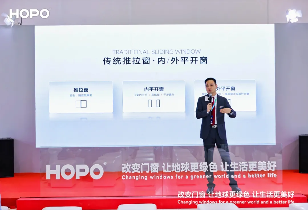 “破局新生,向上生长”主题分享环节,星空电竞窗控董事长李增榜从宏观角度分析了当下的机遇与挑战。李董表示,在当前存量市场下,行业面临深刻变革,绿色低碳和可持续发展的重要性显得尤为突出。正如HOPO始终坚守的“改变门窗,让地球更绿色,让生活更美好”愿景一样,星空电竞