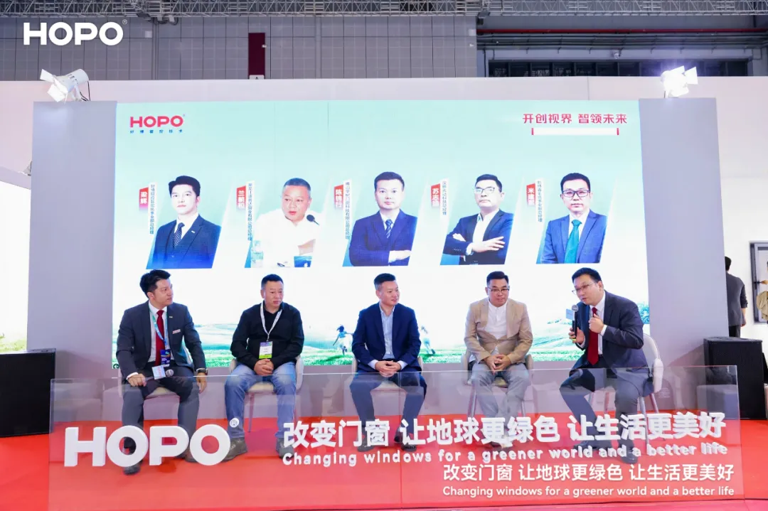 如果说新品发布是HOPO对技术创新的直接展现,那么行业趋势交流则是其对门窗领域未来深刻洞察的体现。此次HOPO特于2024 FBC展会首日以“开创视界·智领未来”为主题,举办行业趋势交流专场活动,有幸邀请到了多位行业领袖与专家,共同探讨门窗幕墙行业的未来趋势与挑战。