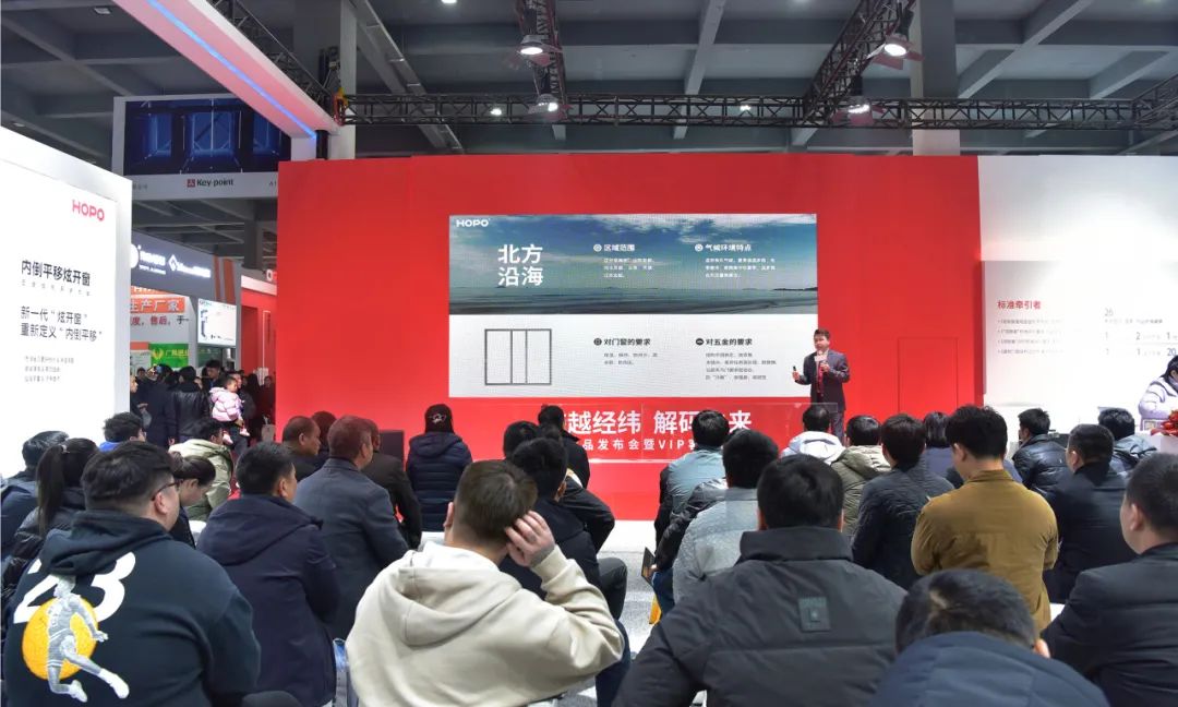 在展会中,“HOPO新品发布会暨VIP客户私享会”在A1-T13中心舞台举行。此次活动以“跨越经纬,解码未来”为主题,聚焦HOPO的新理念及其新品发布。来自五湖四海的门窗业精英、经销商和行业领袖齐聚一堂,共同见证2024 HOPO新品的闪亮问世,并深入探讨门窗行业的未来趋势与前景。