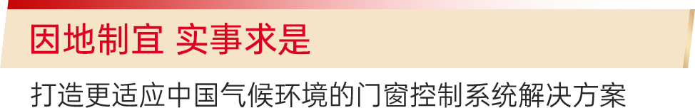 不断探索和创新,致力于提供更适应中国气候环境的门窗五金控制系统解决方案,满足各地消费者的需求。
